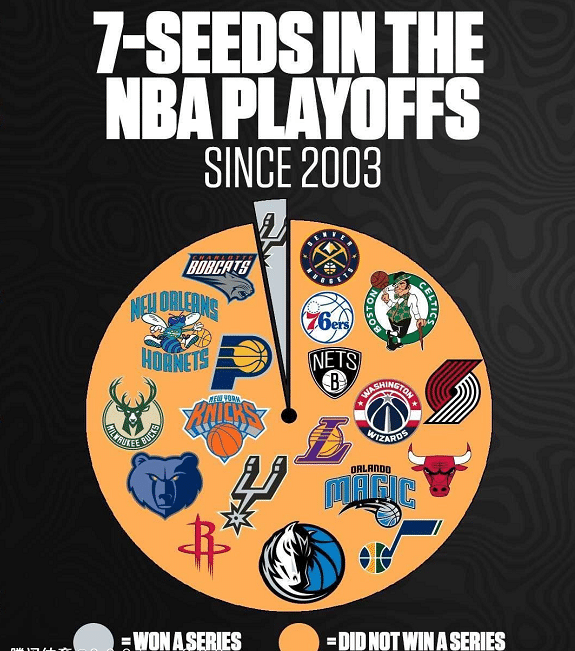 那么说湖人晋级的难度有多大呢?根据外媒统计,历史上仅一支球队能黑七,那就是马刺,指的是自NBA季后赛设置7场4胜制以来,只有马刺以西部第7的位置赢下过系列赛,而季后赛改成7场4胜制是在2002-2003年赛季,也就是这18个赛季,只有马刺做到过。值得一提的是NBA历史上黑七的次数也只有5次而已。