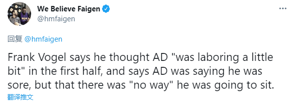 沃帅透露湖人将在明天公布浓眉伤情的具体结果。
