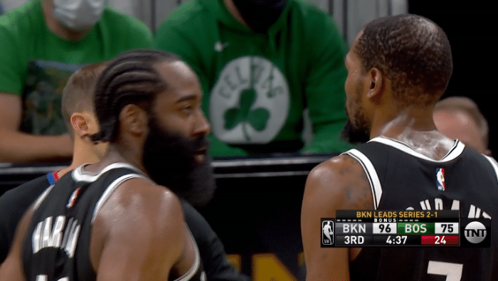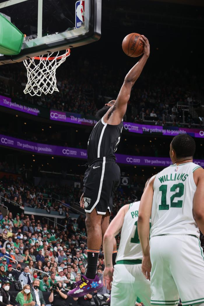 第二节,哈登单核带队,得分和助攻同时抓,更是冲到禁区暴扣,哈登又扣篮了,单节15分6助攻,这一节哈登彻底爆发,此节欧文也爆发了,再加上杜兰特也输送火力,篮网单节40-26拉开分差,三巨头单节28分,比绿军全队得分还多。