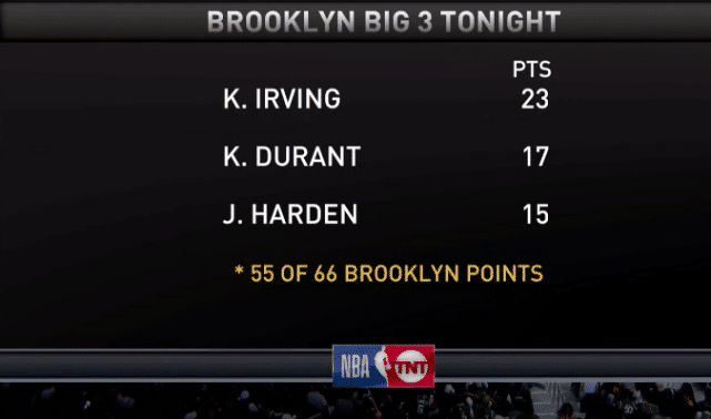 上半场比赛,爱点赞的杜兰特,爱去夜店的哈登以及地平小王子三人全部都完成了爆发,杜兰特这边11中7,拿到了19分,哈登9中7,拿到了17分,欧文14中6,拿到了23分,三巨头合砍下59分,篮网队上半场以73:60分,把握着场上的局面。