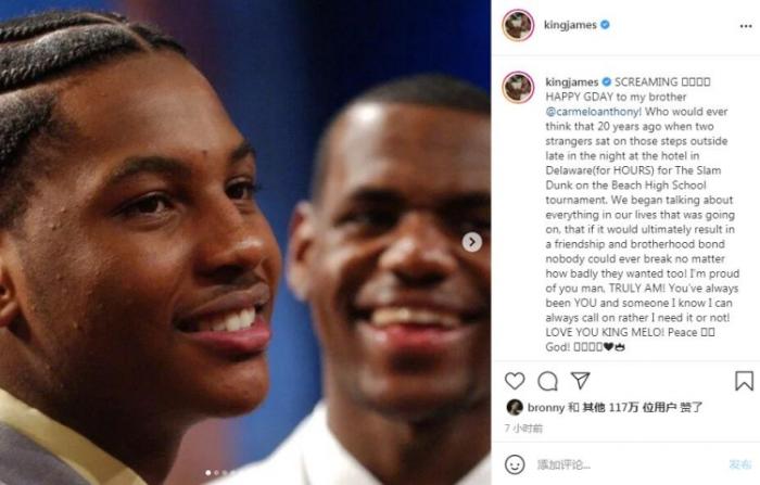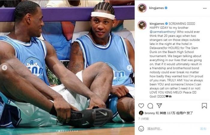 作为03双雄之一,他仍然奋战在赛场上就值得尊重了,赛后作为好兄弟也晒出了两人的“青涩照”附文:尖叫!祝我的兄弟@carmeloanthony生日快乐!谁会想到20年前,(我们还是)两个深夜坐在特拉华州酒店外的台阶上几小时观看海滩高中锦标赛扣篮大赛的陌生人,我们开始谈论生活中发生的每件事,这是我们无法被打破的友谊和兄弟情的开始!我为你感到骄傲,兄弟,真的!你一直都是你,是那个我知道无论我是否需要,都可以随时求助的那个人!爱你,KING MELO!