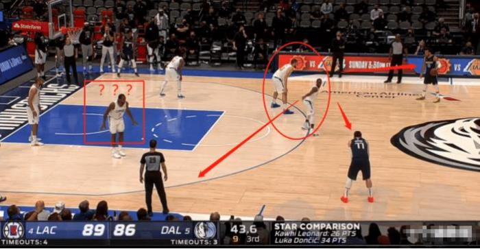 虽然有些犹豫,但是伦纳德还是听话了,果不其然,球来到了东契奇的手中,因为伦纳德的及时到位,东契奇并没有很好地处理球时机,无奈之下,东契奇只能选择强打,在面对1打4的情况下,东契奇再一次将球传给外线的布伦森,结果出现了24秒违例。