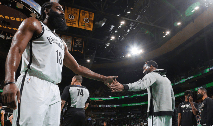 这场比赛篮网三巨头哈登和杜兰特表现出色,但欧文的发挥相对一般,杜兰特39分9板4断、哈登41分7板10助、欧文16分6板2助。欧文此役客场对阵老东家,只要他拿球,现场就会发出巨大的嘘声,而比赛最后时刻他的连续出手也都不中。比赛期间欧文第一节0分,第二节2分,追平个人季后赛生涯上半场的最低得分。