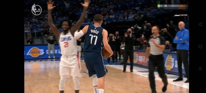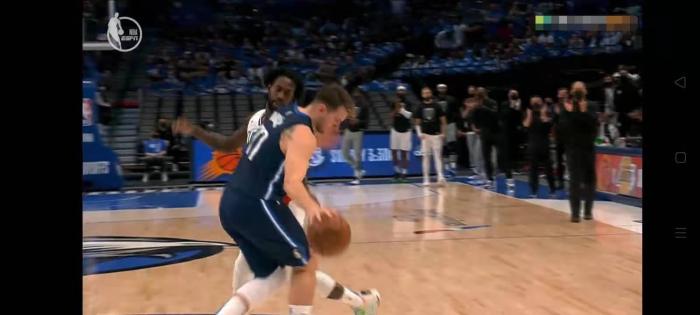 比赛进行到第一节还剩下1分多钟,东契奇运球突破贝弗利遭遇包夹,出现了走步的情况。裁判吹响哨子后,贝弗利上前找东契奇要球,可是东契奇想将球交给裁判,显然贝弗利不愿意错过这样的机会。
