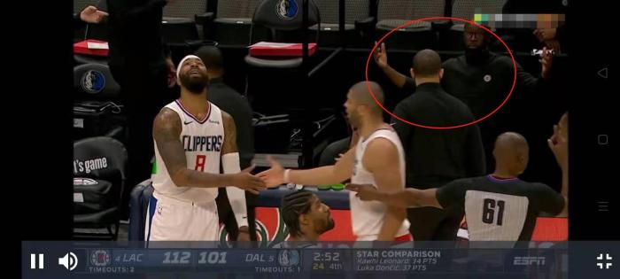 此时搞笑的一幕来了,快船队的助理教练从替补席来到卢指导的身边提醒了卢指导,这时候的卢指导才如梦初醒,和莫里斯一起进入了蹦跶的环节,随后卢指导赶紧高举双手示意这个球要挑战。