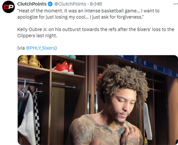 76人惜败后乌布雷暴怒狂骂裁判,在更衣室中,乌布雷为自己的行为道歉,他表示没有人是完美的,且会接受任何后果。乌布雷还补充表示,他觉得比赛最后时刻双方的判罚尺度不一。