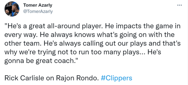 即便如此,朗多的表现依然可圈可点,不少美媒建议泰伦-卢重用朗多。朗多曾在独行侠效力过,和卡莱尔有过合作,在最近一次采访中,卡莱尔也称赞了这位昔日的弟子。“他是一个全能型的球员,他能在各个方面对比赛产生影响。他总是非常了解对手,他总能叫出我们的战术,那也是为什么我们不想打得太过复杂的原因……他会成为一个出色的教练。”