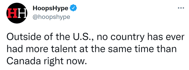 不得不说,加拿大的这套阵容实在豪华,不少圈内人士认为这可能是加拿大历史上最具深度和实力的国家队。美媒HoopsHype点评道:除了美国,没有国家比加拿大拥有更多的篮球天才了。