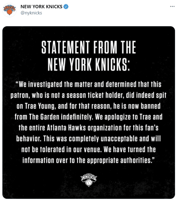 费城官方声明:对比赛中发生的意外进行调查后,我们决定立即撤销涉及该事件球迷的季票资格。此外他将被无限期禁止参与费城主场富国银行中心球馆的任何活动。