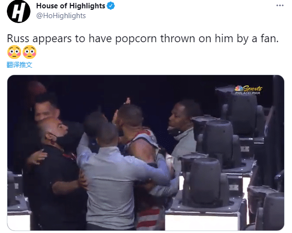 来源:JRS直播网05-28 10:05JRS直播网讯 费城和奇才系列赛G2比赛中,威少在回更衣室途中惨遭扔爆米花,球迷如此恶劣的行为瞬间惹怒威少,当时这球迷就被驱逐离场,如今费城已经正式向威少道歉,并且无限期禁赛重罚这位球迷。