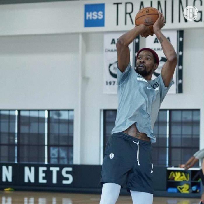 篮网官方晒三巨头同框训练合影,发推写道:专注于G3!
