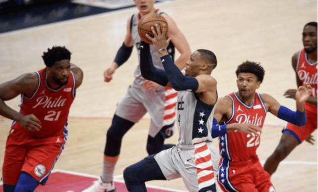 来源:JRS直播网05-27 19:22JRS直播网讯 今天对于威少来说无疑是非常糟糕的一天,5月27日,奇才队对阵费城的比赛拉开大幕,虽然威少对于比赛的胜利充满了饥渴,但是奈何实力上的差距还是让奇才很难让人看到希望。