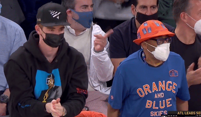 斯派克李是尼克斯的死忠球迷,从乔丹时代就开始疯狂的支持尼克斯,这次尼克斯重返季后赛,斯派克李也一直都在前排的位置,他通过自己的欢呼和举动为尼克斯的球员们加油,镜头也是多次对准他。