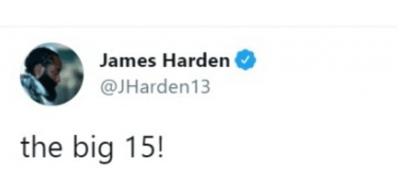 比赛结束之后,哈登更新社交媒体,他表示篮网是15巨头。
