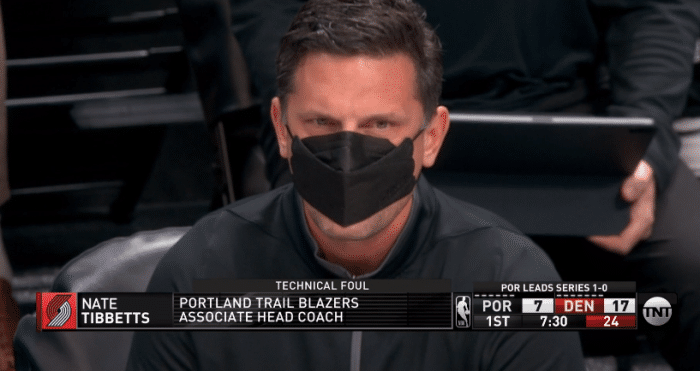首节7分多钟,掘金和开拓者球员有些小摩擦,开拓者助教直接冲上球场,和小波特争吵不休,现场一度混乱,最终裁判吹罚双方技术犯规,开拓者助教和小波特都吃T。