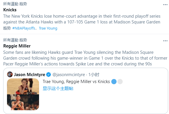 对于特雷杨在更衣室大喊大叫,名记Tim Macmahon发推写道:特雷杨就是现代版雷吉-米勒,在麦迪逊广场花园成为了季后赛英雄,并让尼克斯球迷听到了一切。