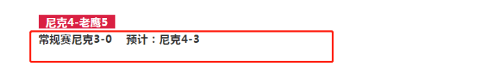 而尼克斯和老鹰,比较难预测。尼克斯的锋线实力出众,而老鹰队有特雷杨这位超级新星,两队各有优势和劣势,谁能晋级,就看临场发挥了。