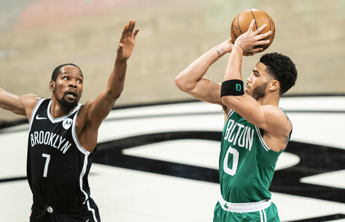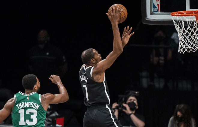 而在今天的这场比赛中,时隔两年重新出现在季后赛舞台的篮网核心杜兰特发挥并不算是出色,本场比赛杜兰特出战40分钟,投篮25投10中,其中三分球8投1中,得到32分12板1助1断1帽4失误,比赛一开始,能够看出杜兰特时隔两年重新回归季后赛的兴奋,他开始一反常态不断地出手,但是手感却完全不在线,虽然第一节得到8分,但是命中率却十分糟糕,第二节比赛杜兰特开始有意识地提高出手把握,单节再度拿到8分,第三节比赛杜兰特开始发挥,单节得到13分3篮板,帮助球队完成反超,第四节杜兰特得到3分,全场比赛得到32分12个篮板球。