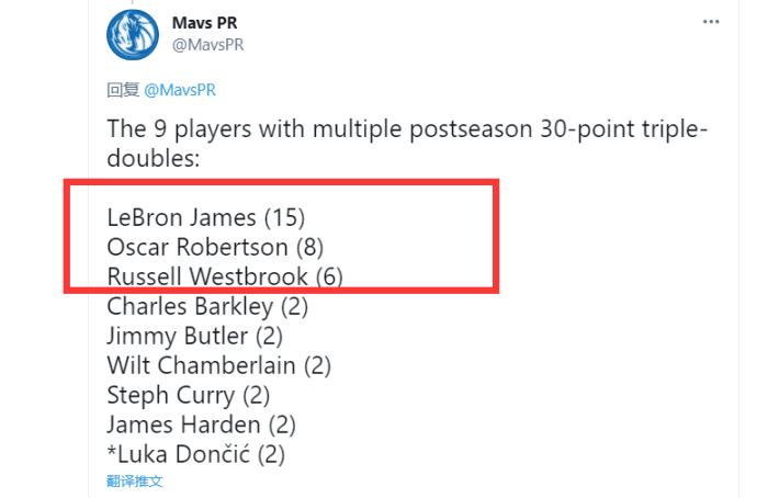 东契奇确实是个天才,去年季后赛面对快船就砍下了准三双的场均数据,今年第一场就再次轰下30分的三双,这也是他季后赛第二次30分三双,直接并列历史第4,仅次于詹姆斯、罗伯特森和韦少。
