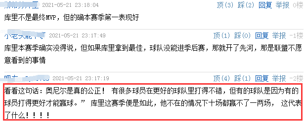奥尼尔对库里的称赞,同样得到网友的肯定,因为奥尼尔那一句“有很多球员在更好的球队里打得不错,但有的球队是因为有的球员打得更好才能赢球。”引起网友的共鸣。本赛季勇士确实太需要库里,没有库里的勇士确实是一支鱼腩球队,可是库里在场可以改变这一切,那一份得分王的数据以及历史只比乔丹低的老将纪录,都说明了勇士是因为有库里这样联盟最佳的球员带队才能赢球。