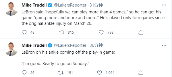 詹姆斯赤膊接受采访,谈到伤情:我的脚踝很好,我已经准备好对阵太阳了。谈到对阵保罗,詹姆斯表示把保罗比作是朗多、追梦格林这样的对手,盛赞保罗是世界上最有智慧的男人;詹姆斯还说保罗、布克、艾顿组成的三巨头表现非常出色,其余的家伙们也非常优秀,他们的中距离投篮是联盟中最好的,这也是湖人必须应对的挑战。