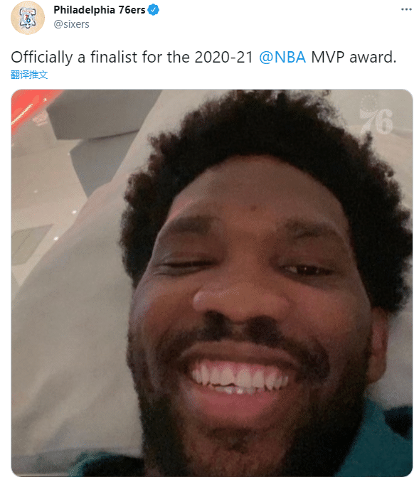 恩比德是约基奇夺得MVP的最大竞争对手,他出战51场比赛,场均轰下28.5分10.6篮板2.8助攻1.4盖帽1抢断,带队拿到49胜23负东部第一的战绩;费城官方第一时间恭喜恩比德入围MVP最终候选名单,晒出恩比德咧嘴大笑表情。