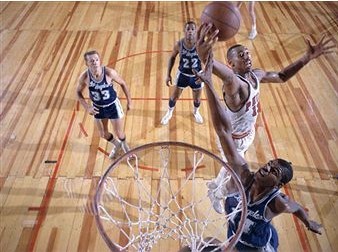 张伯伦进入联盟后,就一直牢牢把持着得分王的宝座,诸如埃尔金·贝勒和奥斯卡·罗伯特森等砍分机器,也只有努力争第二的份儿。37.6分、38.4分,头两个赛季,张伯伦已然足够惊艳,但所有这些和1961-1962赛季相比,根本不值一提。这个赛季,张伯伦光是70+的比赛就达到了4场,场均得分是前无古人,后也不可能有来者的50.4分。4029分,张伯伦还是NBA历史上唯一单季总得分突破4000分大关的球员。如你所知,张伯伦最变态的表现是1962年3月2日勇士队对阵尼克斯队时匪夷所思地剁下了100分——细心的朋友会发现,尼克斯队喜欢成人之美,前一个赛季,贝勒曾在纽约球队头上卷走71分,而在几十年后的2008-2009赛季,他们又被勒布朗·詹姆斯、科比·布莱恩特和德怀恩·韦德轮番打劫。