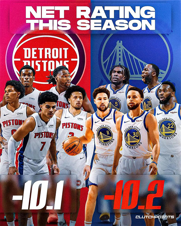 来源:JRS直播网12-14 16:22JRS直播网12月14日究竟勇士首发五虎本赛季的表现有多糟糕?净效率-10.2全联盟最差,甚至比20连败的活塞还差;美媒CLutch Points发推直言:太疯狂了,自10月底(10月31日)以来一场都没赢的活塞首发净效率比勇士首发还好。