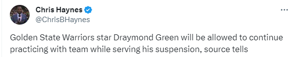 名记Chris Haynes报道,追梦被禁赛期间可以随队一起训练。