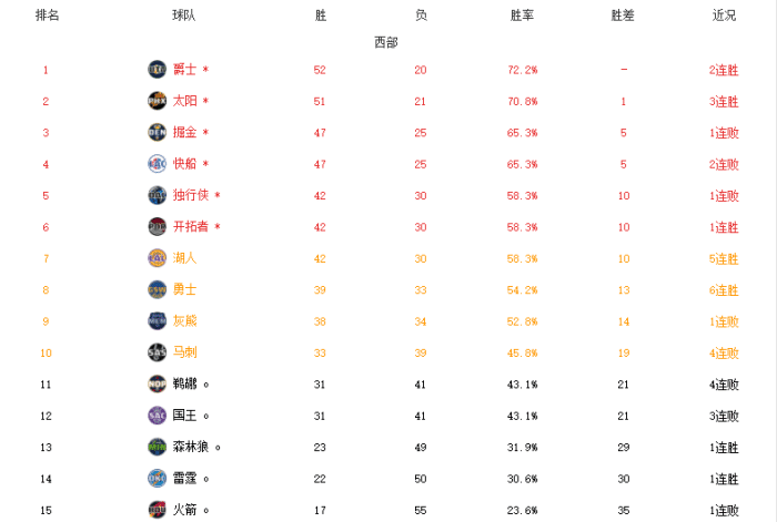 不过后期马刺表现不佳,他们连续输球,状态起伏很大,当时起伏变化很大的还有火箭,不少人觉得马刺会和火箭一样8连胜之后20连败,彻底崩盘。不过好在马刺稳定住了局面,他们的排名在第八名左右徘徊。5月份的一波5连败让他们彻底无缘前八,好在鹈鹕和国王同样掉链子,马刺以33胜39负,排名西部第十,晋级到附加赛;