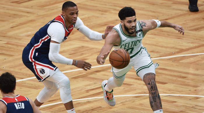 来源:JRS直播网05-19 14:50JRS直播网讯 北京时间5月19日,附加赛首日,凯尔特人依靠着塔图姆斩获附加赛历史上第一个50+的得分,在主场击败奇才,成功拿下常规赛第七名,季后赛首轮对手是篮网。奇才将会和击败黄蜂的步行者展开对决,争夺常规赛第八名。这场比赛首节凯尔特人占据优势取得领先,次节奇才逆袭反超比分,第三节凯尔特人在塔图姆爆发的情况下打出一波17-2开局强势领先,他单节轰下23分。末节鏖战,凯尔特人稳住局面,成功拿下胜利,锁定常规赛第七名。