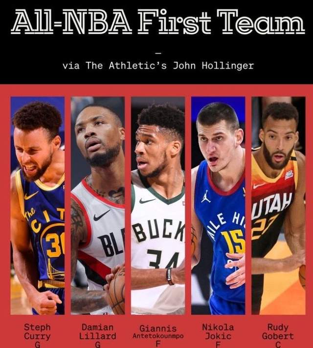 美记评选本赛季最佳阵容:控卫是库里,小前锋是字母哥,那中锋是谁呢