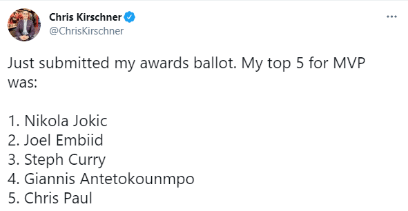 正式投票MVP!多位名记晒票选结果,约基奇力压大帝+库里获选票