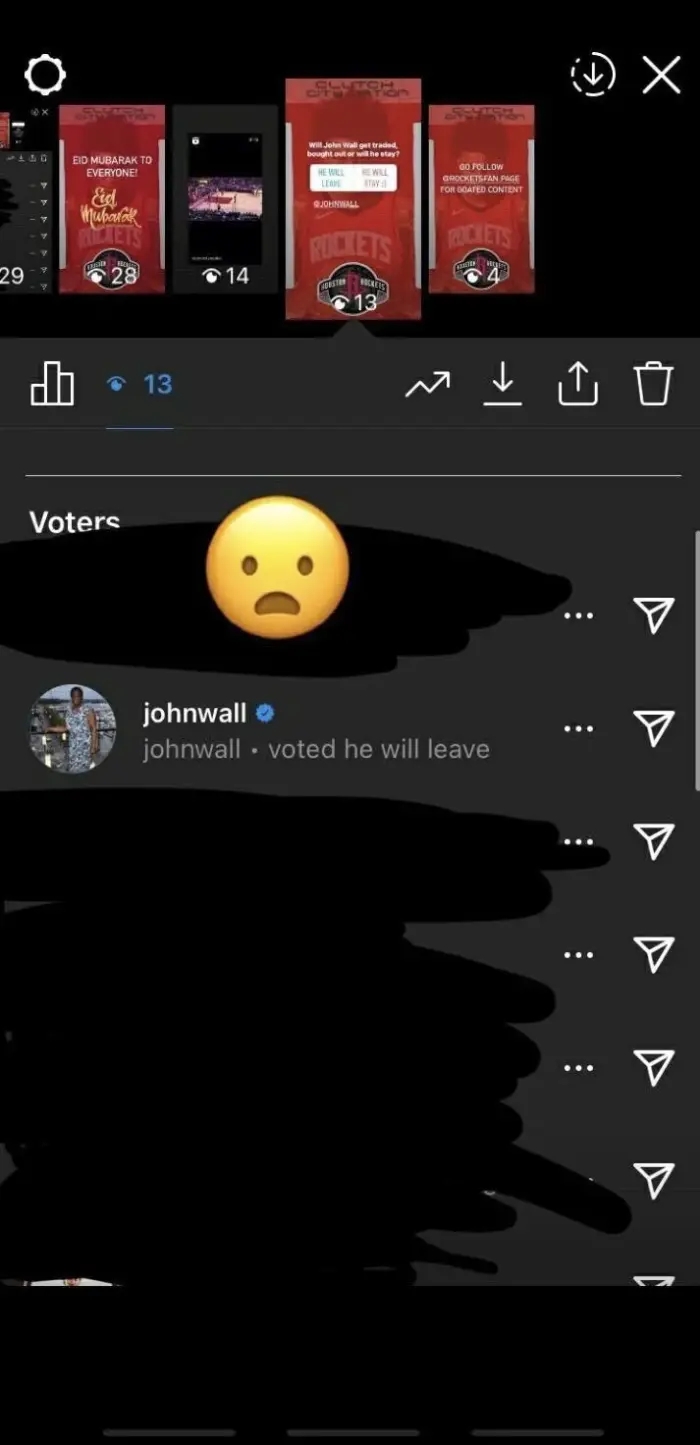除此之外,因二级跟筋拉伤而早早就在家里躺的沃尔,闲来无事只能在网上冲浪,刷到火箭媒体Clutch City Nation发起的一项投票,内容是: