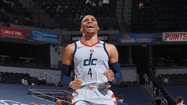 韦少场均11.7次助攻,哈登10.9次(出场数不足)、特雷杨9.4次,韦少一度落后哈登很长的时间,不过后期哈登受伤,他的出场次数达不到联盟的要求标准,而韦少后期疯狂的三双表演,单场助攻数15+也有很多次,所以他一举超越了哈登,现在已经几乎提前锁定了助攻王的荣誉。同时韦少还成为了NBA历史上的三分王,以182次三双的次数超越传奇大O,恭喜韦少。