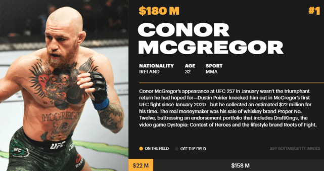 1.麦格雷戈(无限制格斗):1.8亿