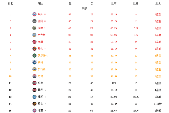 来源:JRS直播网05-12 15:51JRS直播网讯 NBA常规赛进行到尾声阶段,东部附加赛的格局已经很清晰了,随着步行者击败榜首的费城,他们提前锁定附加赛资格;凯尔特人再度不敌热火,正式无缘前六,也将参加附加赛,黄蜂也已经确定附加赛资格。公牛的输球让奇才躺赢,拉文的球队只剩下理论上晋级附加赛的可能性。