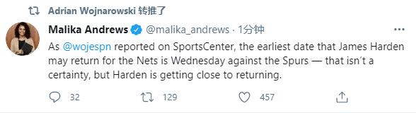 纳什表示“哈登近日连续进行了高强度的训练,并参加了队内分组对抗训练,一切的趋势都是积极的。我们现在需要关注的点是如何为哈登复出制定出最合理的计划。现在我不敢承诺任何事,但球队是有信心的,目标不变”据报道哈登最早于周四打马刺的比赛复出,除此之外丁威迪也在积极训练准备复出,篮网冲啊~