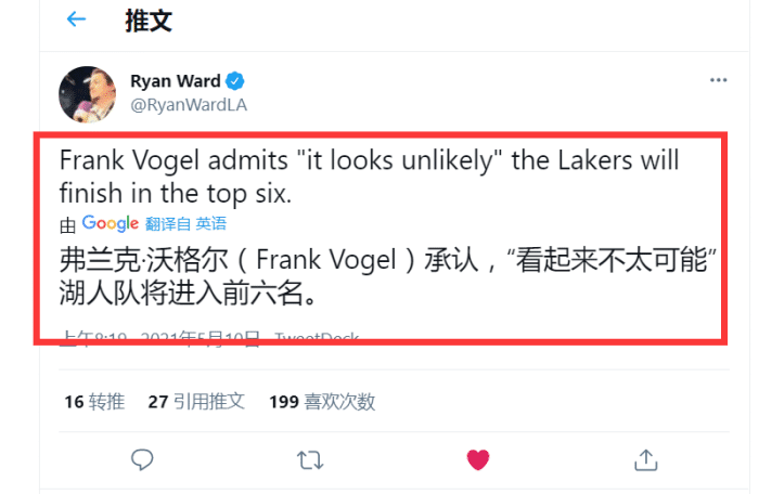 沃格尔亲承:湖人不太可能直接进季后赛!詹姆斯全力准备附加赛