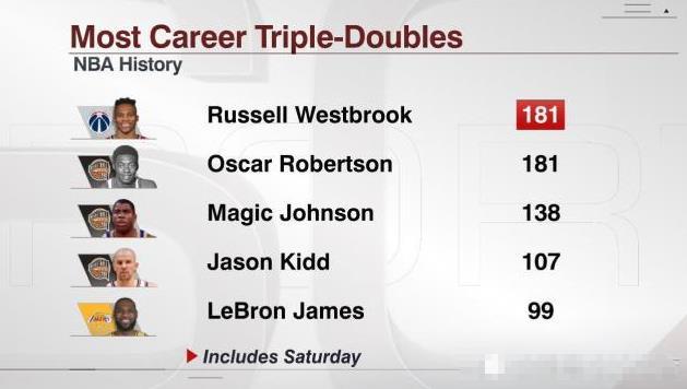 在步行者执行最后一攻的时候,威少让勒韦尔又成为了背景墙,他无情地封盖,让步行者彻底没有了希望。33+19+15的超级三双,威少不仅赢球了,还以生涯181次三双追平了“大O”罗伯特森,并列NBA历史三双榜第一,不过按照威少最近带队13胜3负的火热状态,罗伯特森估计很快要变成历史第二。