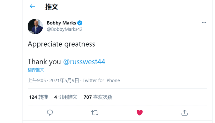 名记bobby marks:欣赏伟大!谢谢你韦少!