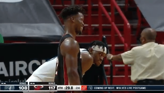 来源:JRS直播网05-08 15:36JRS直播网讯 北京时间5月8日,热火121-112战胜森林狼,巴特勒出战36分钟15投7中拿到25分8篮板6助攻5抢断,带队手刃老东家;本场比赛多人吃到技术犯规,拉塞尔连吃两T被驱逐离场,巴特勒和唐斯互喷吵架也双双吃T;赛后巴特勒怒喷唐斯的脏话曝光。