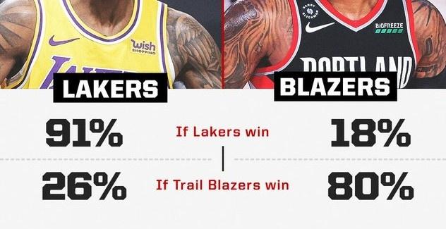 一战定生死?湖人开拓者前六概率91%VS80%,科尔:哇,湖人要第七了!