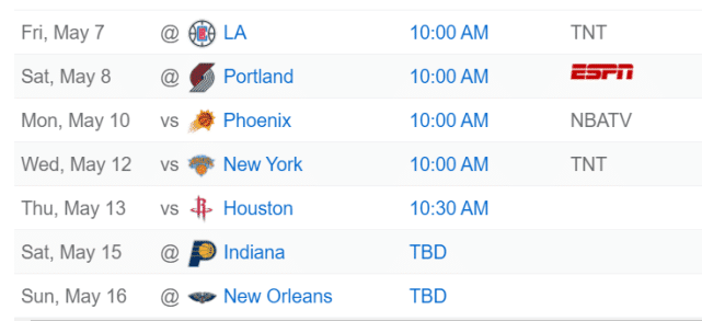 如果詹姆斯在对尼克斯的比赛中复出,他最多还能打四场常规赛,当然,他未必会全部出场,毕竟,湖人的最后四场比赛,是两组背靠背。他们将面临五天四战的艰难赛程,背靠背打完尼克斯、火箭,休息一天后再次背靠背出战步行者和鹈鹕。沃格尔昨天表示,詹姆斯已经被列入每日观察的名单。