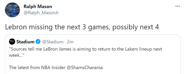詹姆斯回归时间曝光!名记:最可能是下周,计划战尼克斯或火箭复出