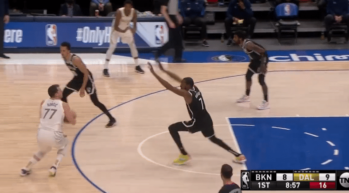 首节独行侠的进攻做得不错,他们一度领先篮网两位数,其中独行侠表现不俗,尤其是首节初期,他在外线持球面对杜兰特的防守,直接一个后撤步就晃开KD,然后轻松命中三分球。很显然这次东契奇单挑杜兰特,取得了完胜,他的假动作骗过了对手,出手也是很稳定的。