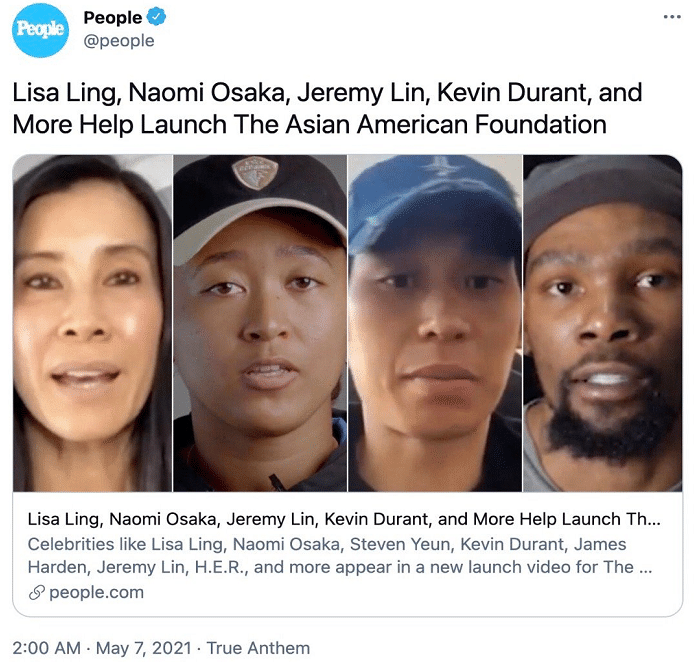 来源:JRS直播网05-07 11:50JRS直播网讯 前段时间外媒报道篮网老板蔡崇信联合沃尔玛、美国银行和NBA联盟等一起成立亚裔基金会,其中蔡崇信和雅虎联合创始人杨致远等人承诺投入1.25亿美元,沃尔玛和NBA联盟等筹集1.25亿,加起来是2.5亿美元,用于支持亚裔社区发展、改变外界对于亚裔的看法,这样的举动收获了外界一片的赞誉。而现在传来消息,凌志慧、大阪直美,林书豪以及凯文杜兰特协助成立了亚裔基金会。