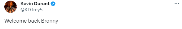 布朗尼身穿南加州大学男篮的6号球衣出战,第一次上场便点燃球馆,无数球迷为他起立鼓掌;杜兰特发推写道:欢迎布朗尼复出。