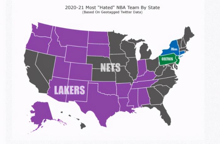 美媒:25个州讨厌篮网,21个州讨厌湖人!难道这就是抱团的下场吗?