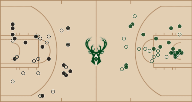 来源:JRS直播网05-03 18:35JRS直播网讯北京时间5月3日,雄鹿主场117-114险胜篮网,字母哥和杜兰特上演了一场“神仙打架”般的对决。字母哥36投21中,三分8投4中,得到49分8篮板4助攻1抢断3盖帽;杜兰特33投16中,三分13投7中,得到42分10篮板2助攻1抢断。两人在比赛中的巨星碰撞,让球迷连呼过瘾!美媒晒出了两人本场的投篮热图。